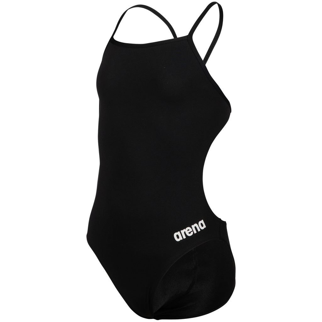 Badeanzug mit offener Rückenlösung, dünnen Trägern und mittlerem Beinausschnitt. Das Hauptmaterial dieses Produkts hat die OEKO-TEX® STANDARD 100 Zertifizierung.