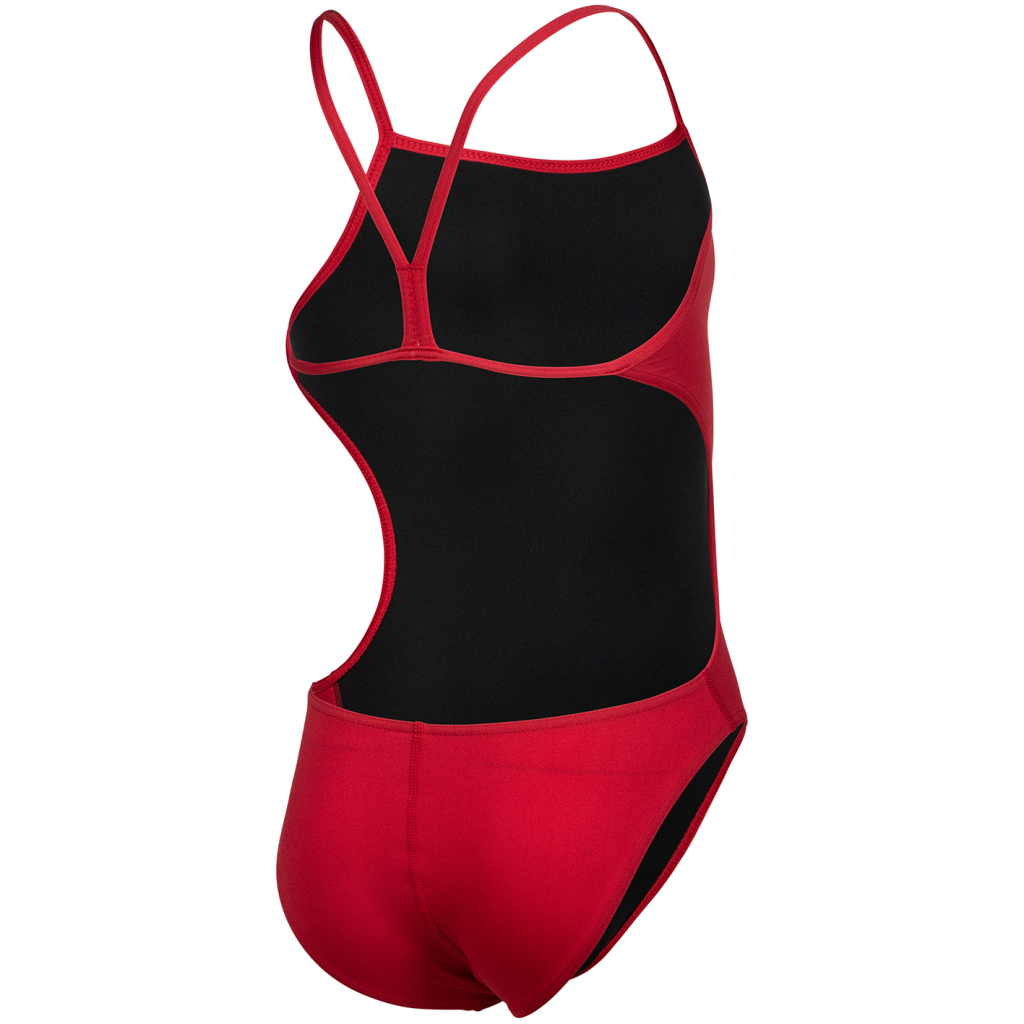 Badeanzug mit offener Rückenlösung, dünnen Trägern und mittlerem Beinausschnitt. Das Hauptmaterial dieses Produkts hat die OEKO-TEX® STANDARD 100 Zertifizierung.