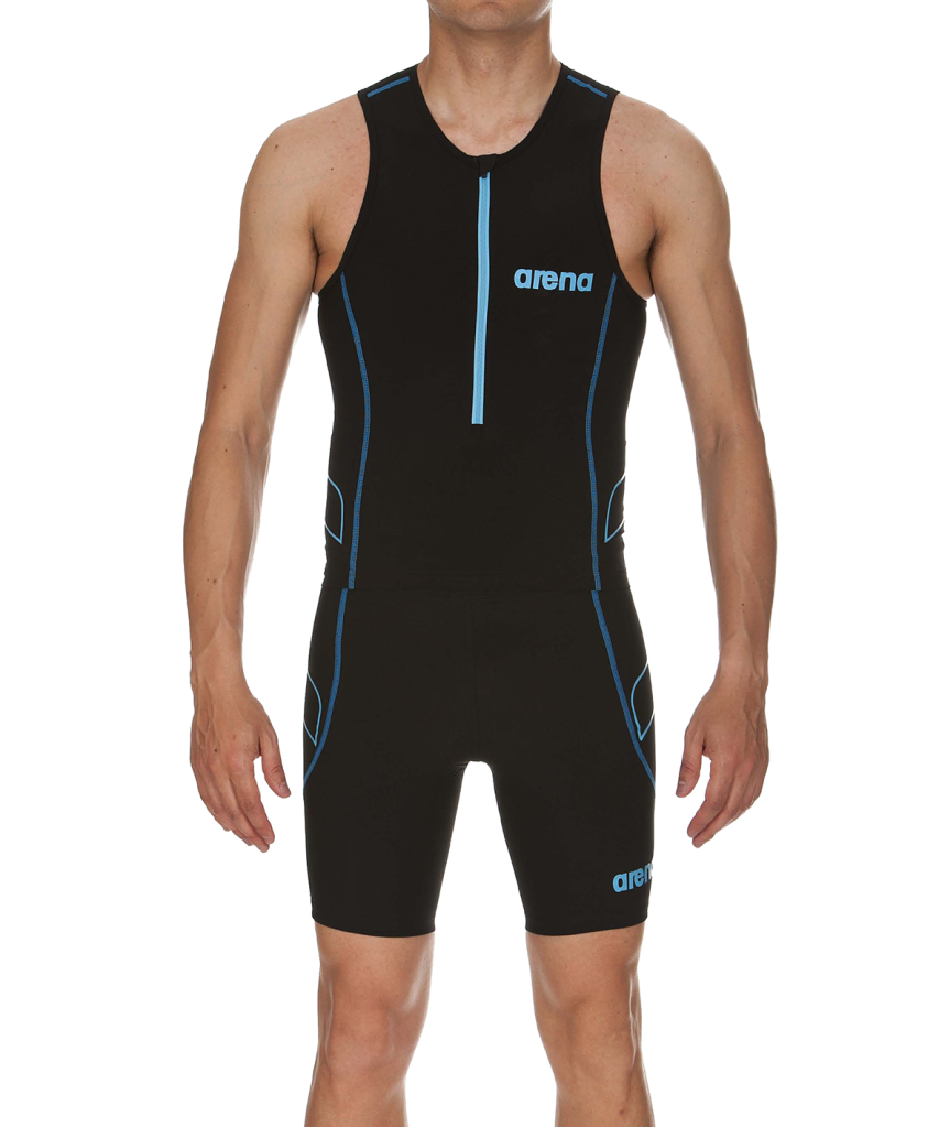 Funktionelles Herren-Tritop für Langstreckentriathlon Aus zwei Materialien, die für optimale Kompression, hydrodynamische Eigenschaften, Komfort und lange Haltbarkeit sorgen. Schnelltrocknend und mit Mesh-Einsätzen – dadurch bleibt der Körper bei den Disziplinen an Land kühl und trocken. Die optimierten Mesh-Taschen zur Aufbewahrung scheuern dank der flachen Nähte nicht.