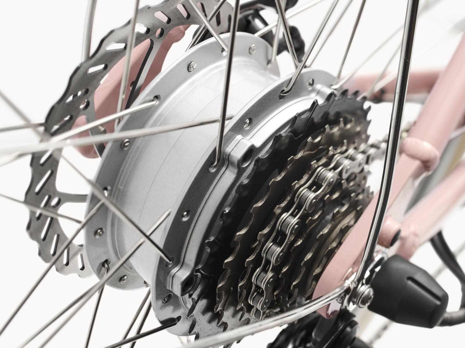 - Dank Hinterradnabenmotor gehst du mit bis zu 25 km/h auf die Reise.