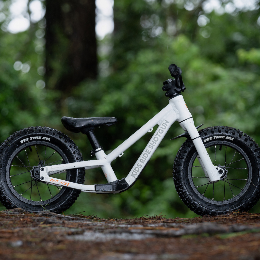 Das Dirt Hero ist für 12- und 14-Zoll-Laufräder geeignet, kann aber auch als Mullet-Rad aufgebaut werden. Bei unseren Nachforschungen haben wir oft gesehen, dass Kinder direkt von einem 12-Zoll-Balancebike auf ein 16-Zoll-Tretfahrrad umsteigen. Ein solch grosser Schritt kann nicht nur ihre Entwicklung behindern, sondern auch ihre Freude am Fahren beeinträchtigen. Die Möglichkeit, sanft von einem 12-Zoll-Rad auf ein 14-Zoll-Rad umzusteigen (und dann Bremsen hinzuzufügen), bevor sie ein viel schwereres Pedalrad übernehmen müssen, sorgt dafür, dass die Kinder Schritt für Schritt vorankommen und der Spass am Fahren erhalten bleibt.