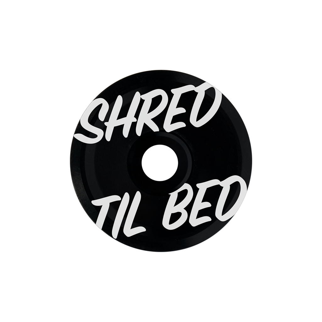 Vorbaukappe aus Aluminium mit SHRED TIL BED Schriftzug