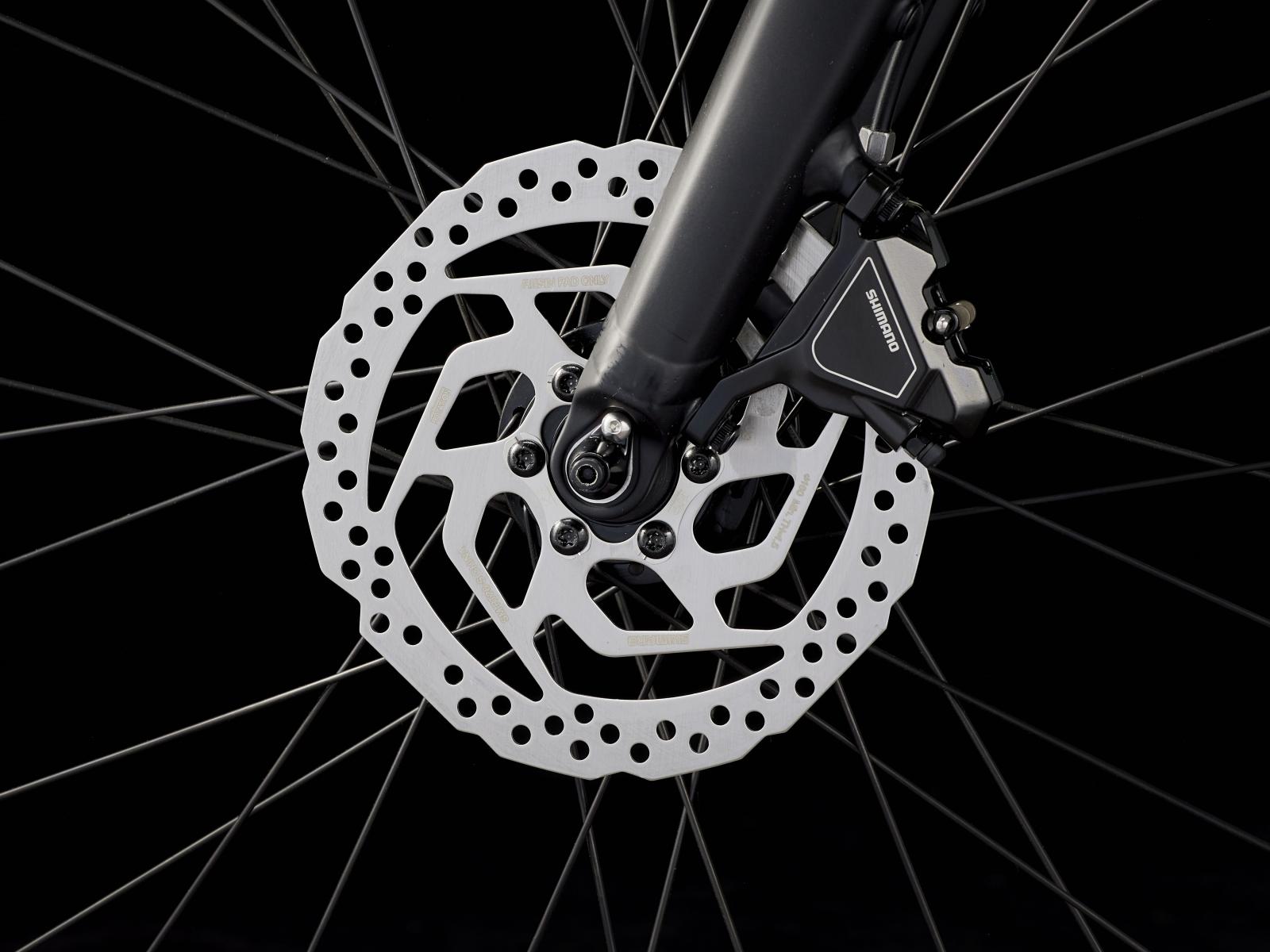 Vorderradbremse: Hydraulische Scheibenbremse von Shimano, MT200 Bremshebel, UR300 Bremssattel // Hydraulische Scheibenbremse von Shimano, MT200 Bremshebel, UR300 Bremssattel