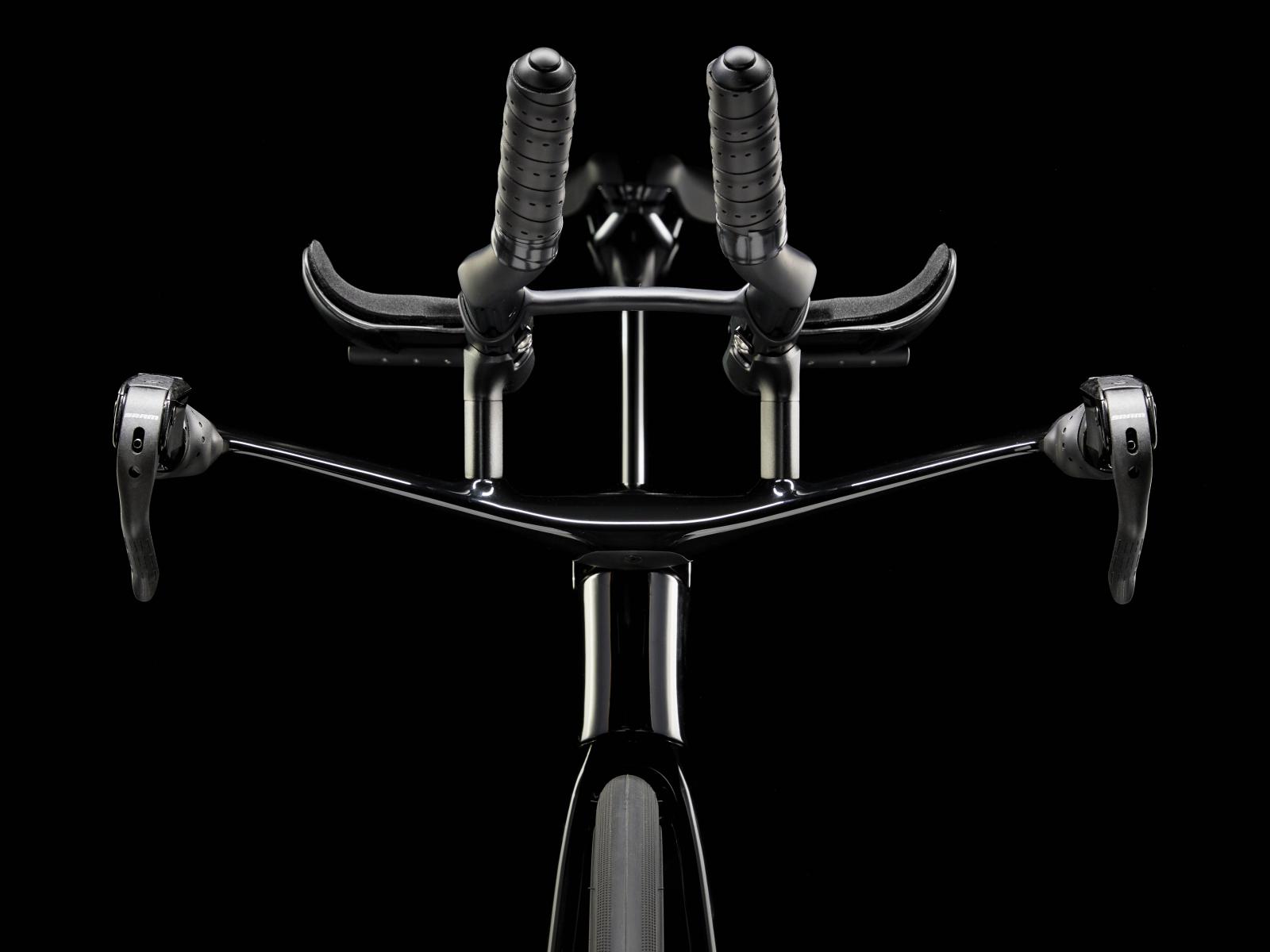 Einen ultraleichten Rahmen aus 800 Series OCLV Carbon, windschnittige Rohre mit Kammtail Virtual Foil-Profil (KVF), eine Speed Concept-Carbongabel mit aerodynamischem Profil, vibrationsd�mpfendes IsoSpeed, integrierte Aufbewahrungsl�sungen f�r Verpflegung, Fl�ssigkeit und Pannenkit, einen drahtlosen, elektronischen SRAM Force AXS D2 12fach-Antrieb mit SRAM AXS Clics-Schalthebeln, einen SRAM Force AXS-Powermeter, einen vollst�ndig integrierten Lenker samt Vorbau, einen triathlonspezifischen Bontrager Hilo Comp-Sattel f�r eine aggressive Aero-Sitzposition, Scheibenbremsen f�r zuverl�ssige Bremsleistung und Bontrager Aeolus Pro 51-