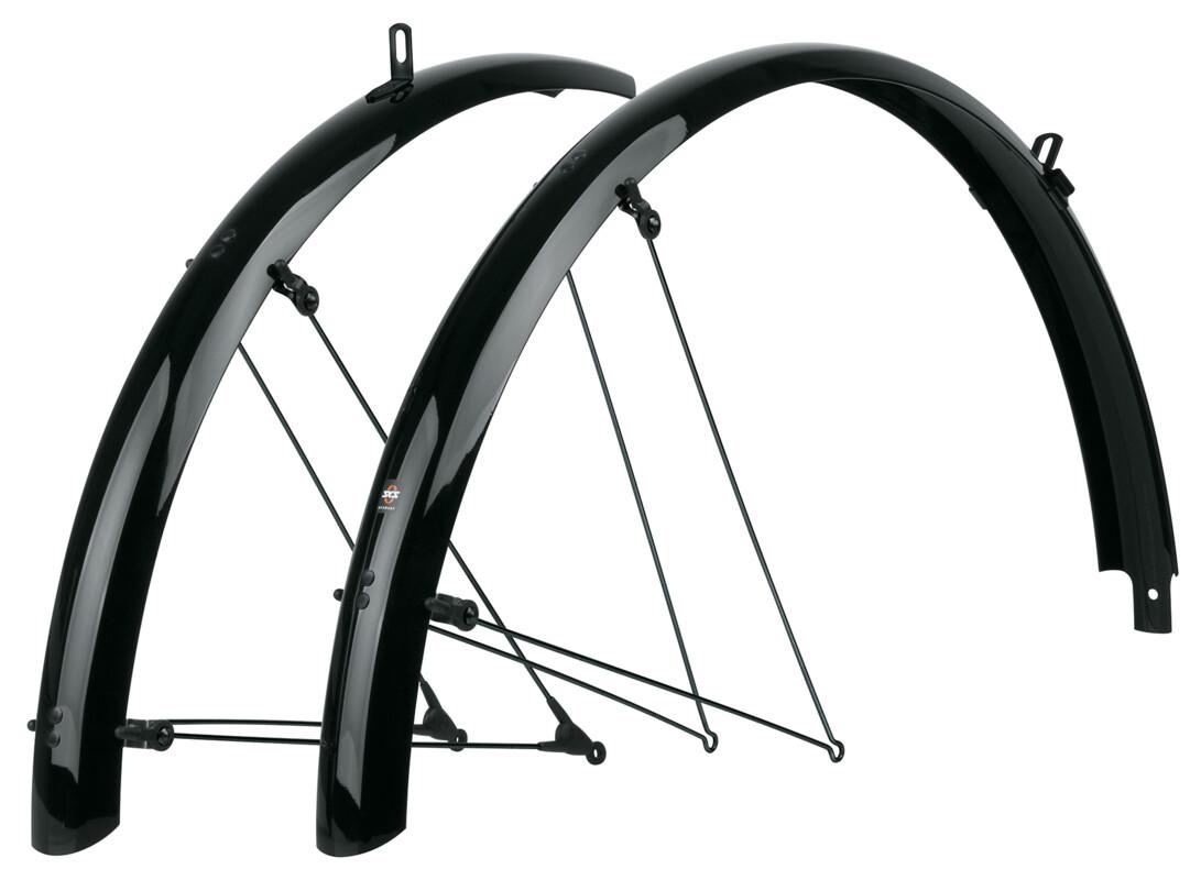 Eine echte Glanzleistung! Das SKS Schutzblech-Set BLUEMELS BASIC integriert sich nicht nur perfekt am Fahrrad, sondern schützt zuverlässig vor Dreck und Spritzwasser. Dank der flexiblen Sandwichkonstruktion, in der hochfeine Aluminiumstreifen in einer Kunststoff-Ummantelung eingebettet werden, sind die Radschützer extrem robust, biegesteif und korrosionsgeschützt.
