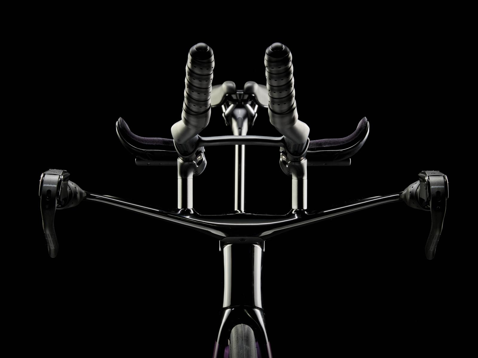 Einen ultraleichten Rahmen aus 800 Series OCLV Carbon, windschnittige Rohre mit Kammtail Virtual Foil-Profil (KVF), eine Speed Concept-Carbongabel mit aerodynamischem Profil, vibrationsdämpfendes IsoSpeed, integrierte Aufbewahrungslösungen für Verpflegung, Flüssigkeit und Pannenkit, einen drahtlosen, elektronischen SRAM Force AXS D2 12fach-Antrieb mit SRAM AXS Clics-Schalthebeln, einen SRAM Force AXS-Powermeter, einen vollständig integrierten Lenker samt Vorbau, einen triathlonspezifischen Bontrager Hilo Comp-Sattel für eine aggressive Aero-Sitzposition, Scheibenbremsen für zuverlässige Bremsleistung und Bontrager Aeolus Pro 51-