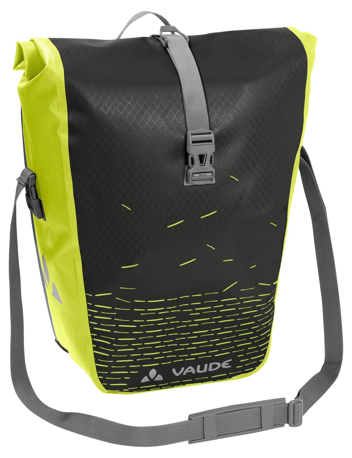 Auf in die große, weite Welt! Die wasserdichte Hinterradtasche mit dezentem Printaufdruck wird aus robustem, PVC-freiem Planen-Material am deutschen VAUDE-Standort in der Nähe des Bodensees hergestellt. Sie lässt sich durch den Wickelverschluss auf individuelle Größen bringen und absolut dicht verschließen. Für Übersichtlichkeit sorgt eine einfache Innentasche. Die Radtasche wird mit dem QMR 2.0-System und stabiler Rückenplatte rechts oder links am hinteren Gepäckträger befestigt, ist einfach über ein Handrädchen justierbar und lässt sich schnell und einfach abnehmen. Mit einem Fahrradschloss kann sie direkt am QMR-Haken verriegelt werden. Inklusive dekorativen Reflexelementen. Kann durch diese praktischen Zubehör-Taschen ergänzt werden: Toolbag Back, Sortyour Back, Addita Bag. Lieferumfang: 1 Tasche, die entweder links oder rechts am Gepäckträger befestigt werden kann.